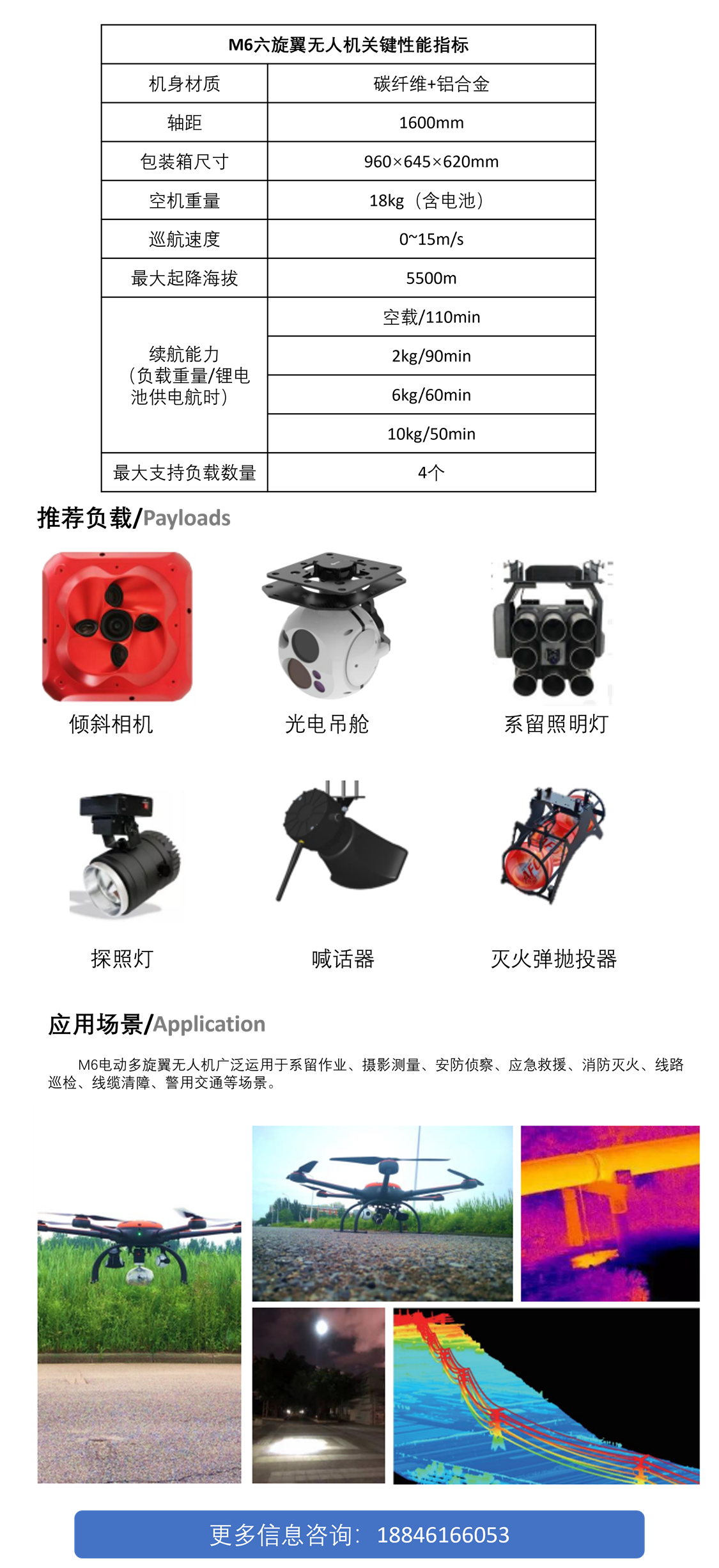 M6多旋翼无人机拥有超强的负载及续航能力,最大荷载能力可达10KG,保证无人机刚韧、高强度的产品质量。系统配备高精度双天线RTK模块,支持PPK/RTK融合解算和双天线定向功能,支持航测相机、激光雷达、喊话器、光电吊舱、抛投设备等多种载荷的安装互换以及单平台+多载荷的同时挂载。